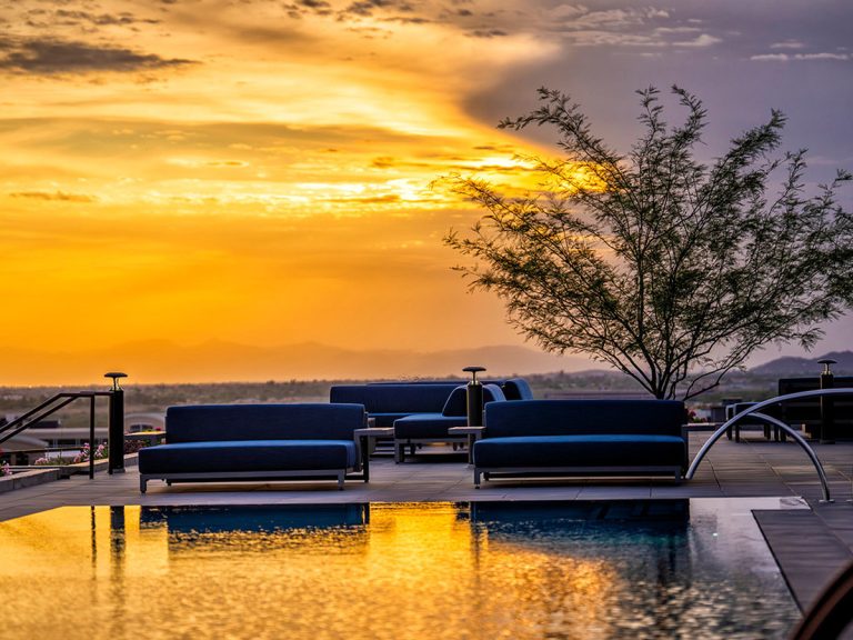 An elevated rooftop lounge experience with custom Bravada furnishings for a five-star resort.